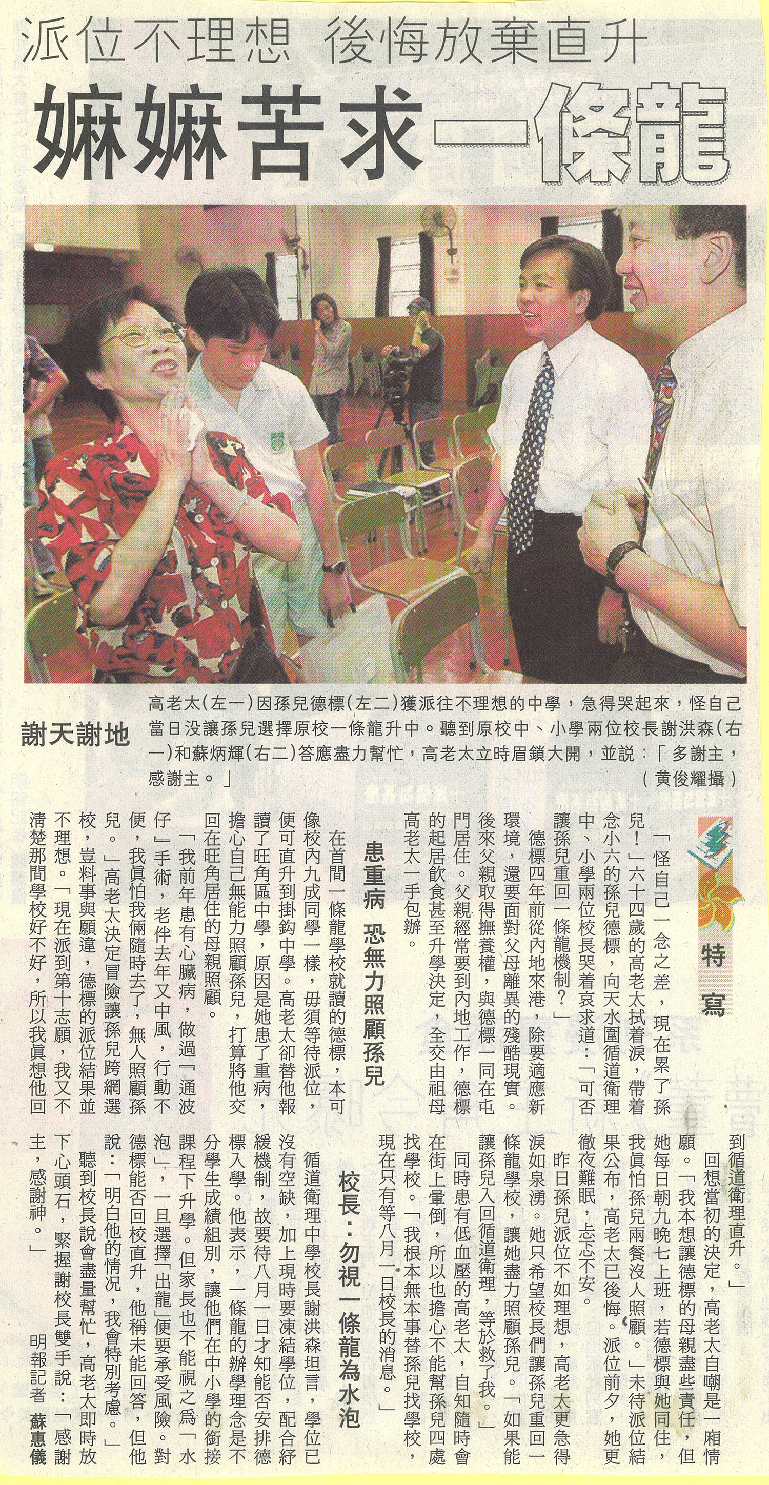 | 2001-07-08 | 校長:一條龍符合教學理念 | 明報 |