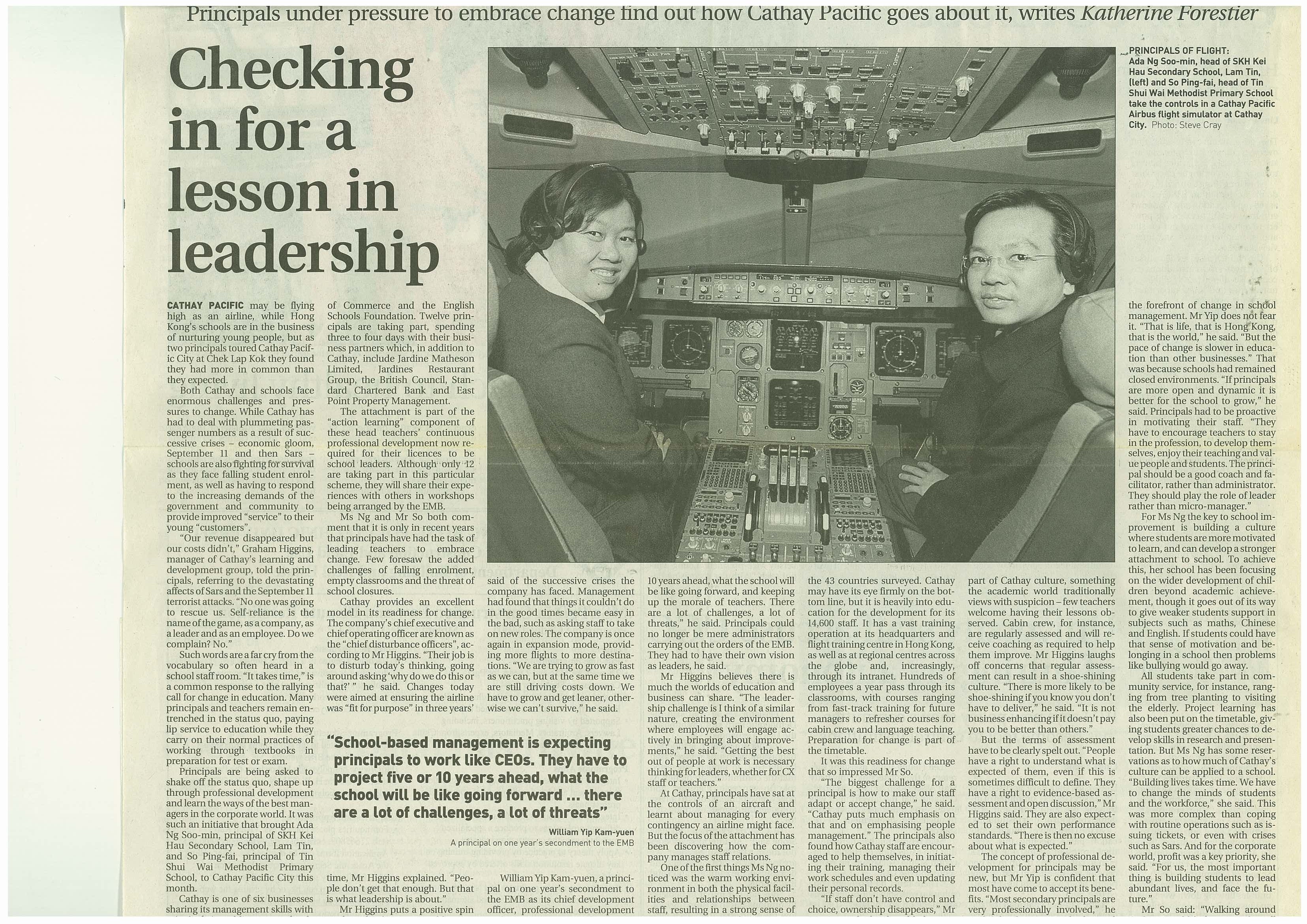 | 2004-03-20 | Checking in for a lesson in leadership | 南華早報 |