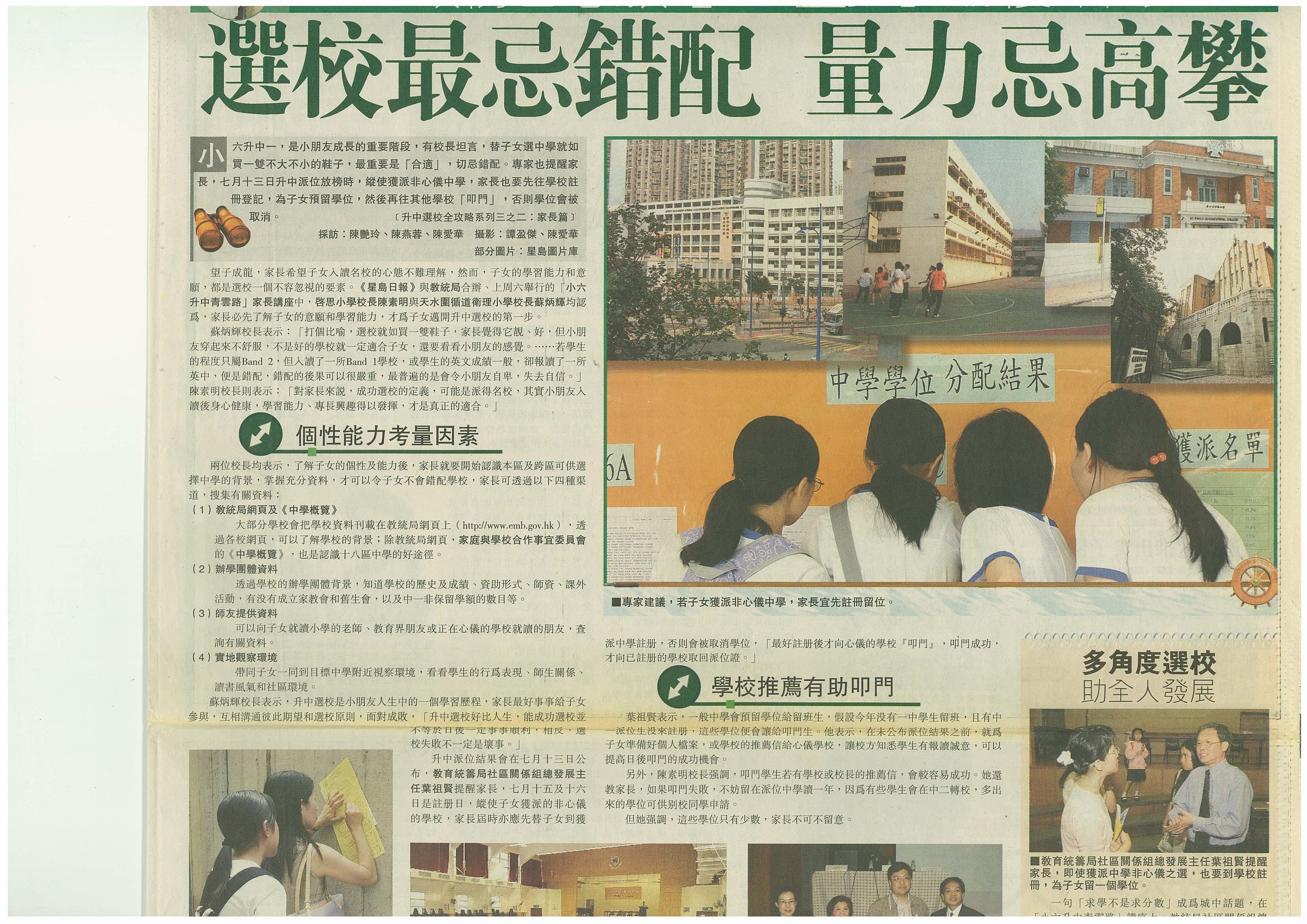 | 2004-04-28 | 升中選校全攻略 | 星島日報 |
